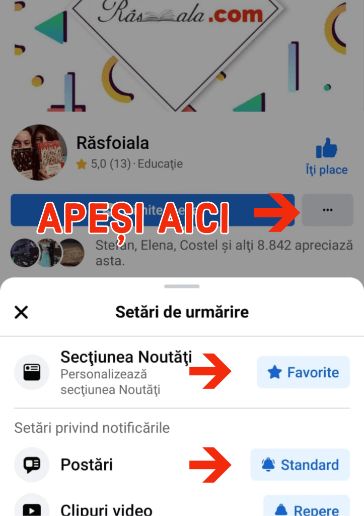 Și ca să vezi la favorite tot ce postează paginile respective, mai ai încă 17 setări de făcut. Am încercat să le simplificăm în acest grafic.