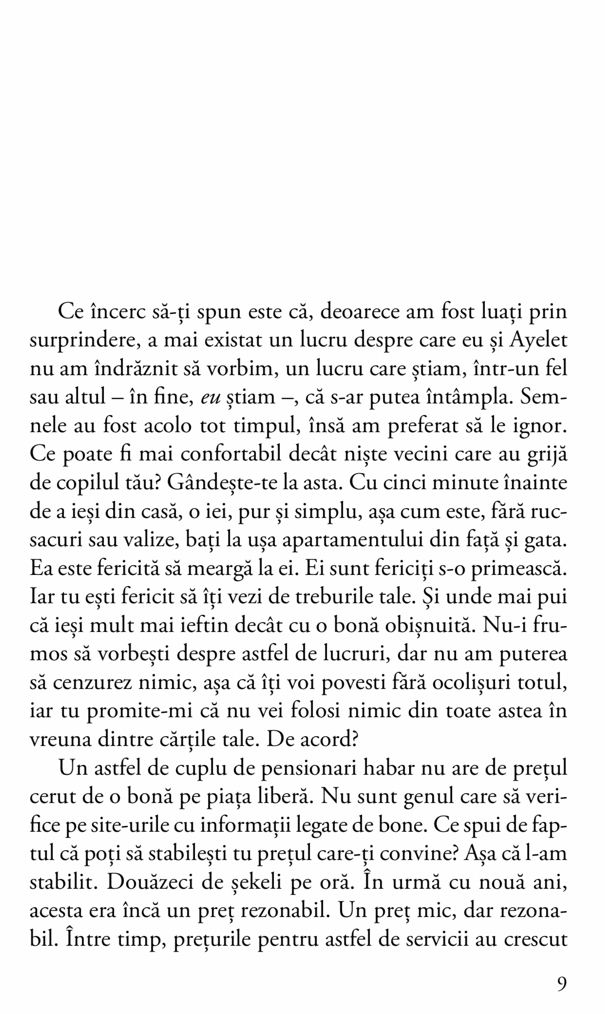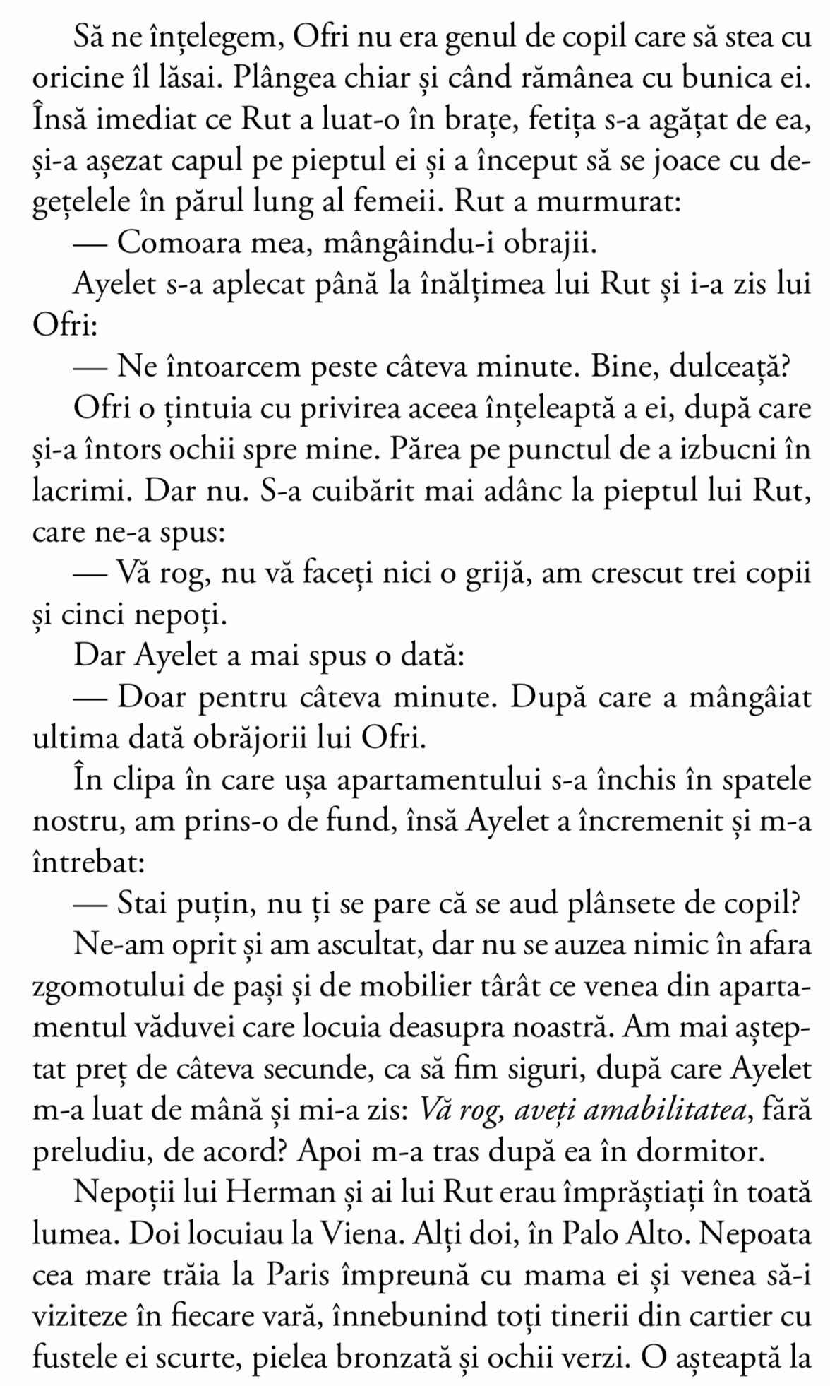 Sunt câțiva ani de când am citit romanul lui Eshkol Nevo, Trei etaje, însă față de alte cărți care mi-au plăcut, dar nu au lăsat aproape nimic în mintea și inima mea, de aceasta îmi amintesc ca despre întâmplări la care eu însămi am fost martoră. Oralitatea lui Eshkol Nevo – sentimentul fain că cineva îți povestește în viu, umorul și verva prozei sale cuceresc orice cititor.