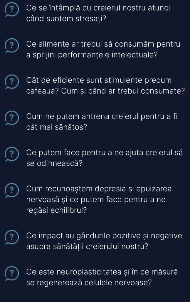 Descoperă pas cu pas secretele unui creier sănătos și ale unei vieți echilibrate, ghidat de explicațiile și recomandările unui adevărat profesionist în neurochirurgie!