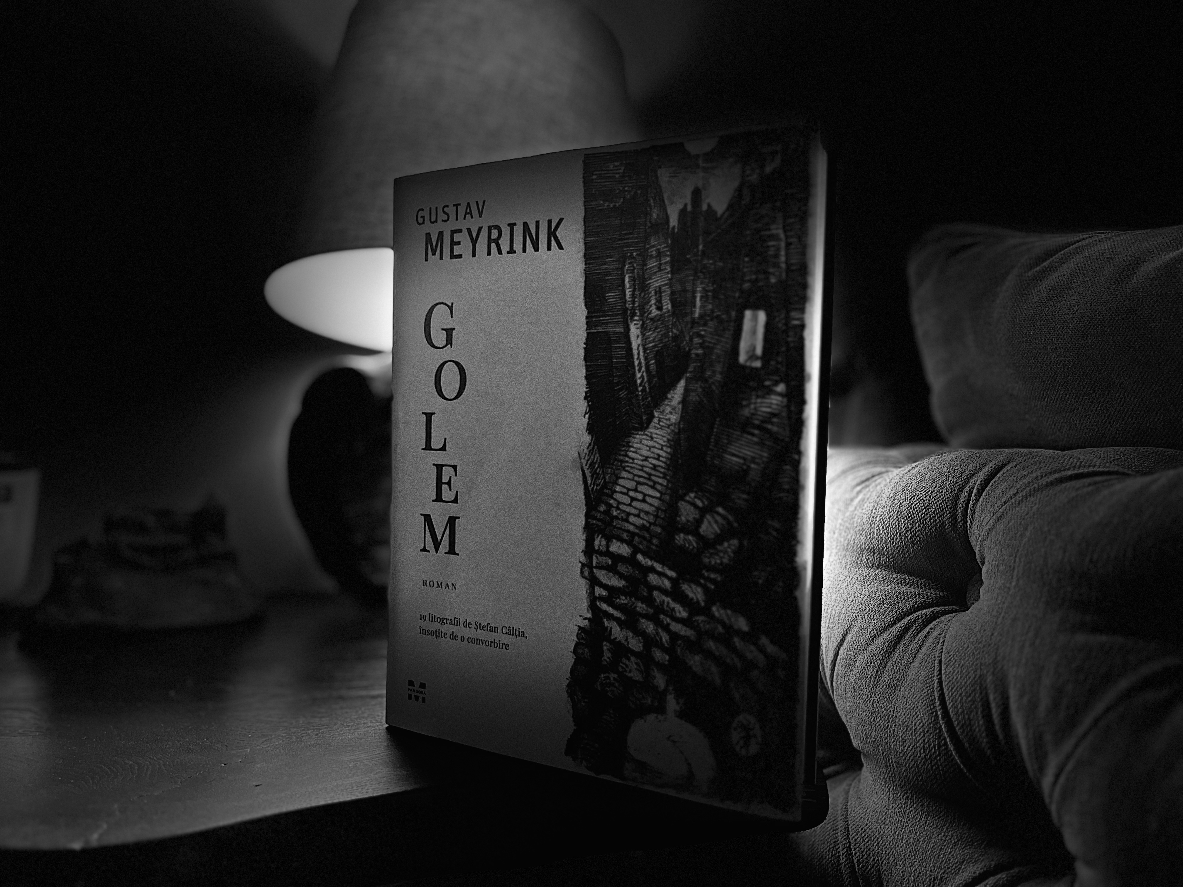 Despre ediția nouă a cărții, apărută la finalul anului trecut la Pandora M, dacă n-ați apucat s-o răsfoiți și admirați în librării, trebuie să mai știți că include minunatele litografii ale pictorului Ștefan Câlția. La fel de fascinante și abstruse precum acest personaj despre care afli azi, Golem. Parcă îl vezi, dar parcă nu e, parcă e om sau parcă-i de piatră, parcă e viu sau parcă e umbră, parcă e el, parcă sunt eu. Cine-i?