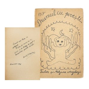 Această carte e un adevărat exemplar de colecție, întrucât Drumul cu povești e primul volum la care au participat toți cei trei membri ai familiei: Tudor Arghezi este autorul textului inspirat din poveștile pe care le spunea copiilor săi, ilustrațiile aparțin fiicei Mițura Arghezi, iar tiparul a fost realizat de fiul Baruțu, la prima lui încercare în tipografia familiei, consemnată și într-o dedicație olografă. Cartea s-a vândut la licitația Artmark din februarie cu 500 de euro.