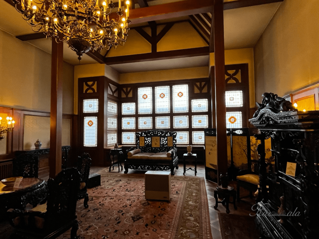 Una dintre acestea este Camera Norvegiană, odaia privată a Reginei Maria. Construită integral din lemn sculptat, camera a fost folosită drept capelă, loc de odihnă și de lectură pentru regină. Construcția de lemn, foarte durabilă, a rămas intactă după cutremurul din 1977, care a afectat grav aproape întregul palat.