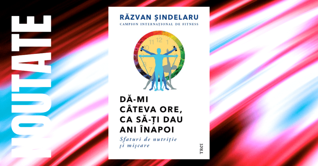 Cum să slăbești cât vrei fără să te îngrași la loc? Ce exerciții fizice ți se potrivesc, indiferent că le faci la sală sau acasă? Ce stil de viață îți asigură vitalitate și longevitate? Sunt câteva dintre întrebările la care răspunde noul volum “Dă-mi câteva ore, ca să-ţi dau ani înapoi”, de Răzvan Șindelaru, maestru al sportului și multiplu campion internațional la fitness și culturism.